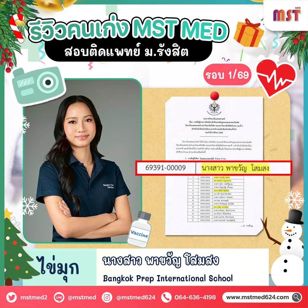 ขอแสดงความยินดีกับคนเก่งของเรา "น้องไข่มุก" จากโรงเรียน 𝐁𝐚𝐧𝐠𝐤𝐨𝐤 𝐏𝐫𝐞𝐩 𝐈𝐧𝐭𝐞𝐫𝐧𝐚𝐭𝐢𝐨𝐧𝐚𝐥 𝐒𝐜𝐡𝐨𝐨𝐥 ที่สอบติด คณะแพทยศาสตร์ มหาวิทยาลัยรังสิต รอบที่ 𝟏/𝟔𝟗 ได้สำเร็จ!