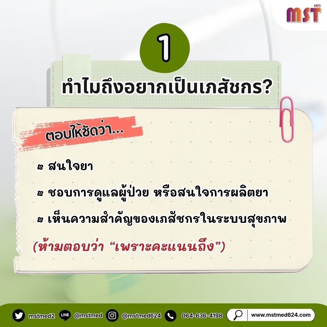 1️⃣ "ทำไมถึงอยากเป็นเภสัชกร?" 🧪
