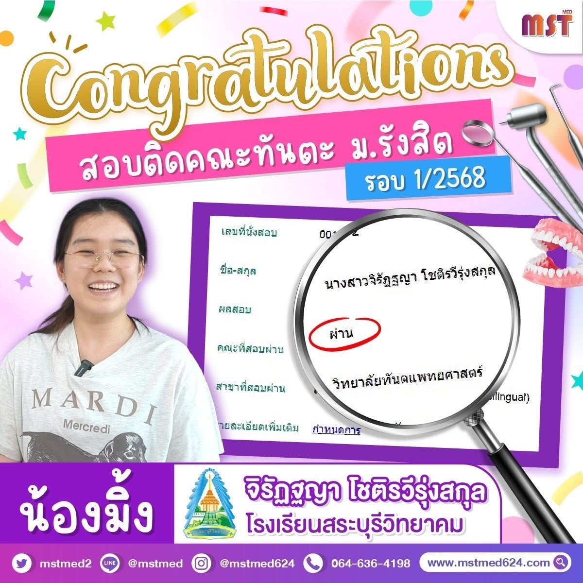 🥳ยินดีด้วย! 'น้องมิ้ง' สอบติดทันตแพทย์ ม.รังสิต รอบ 1/2568 🦷✨