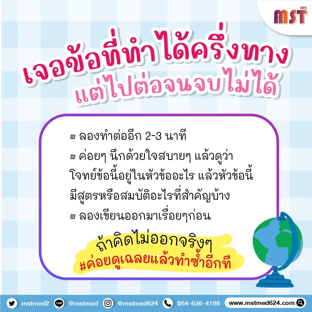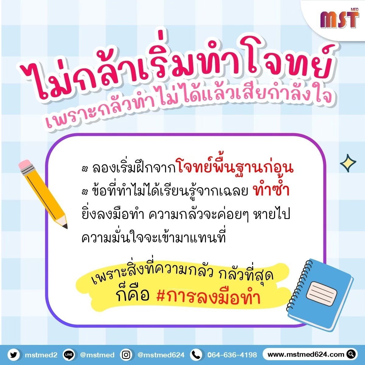 หยุดกังวลแล้วมาฟังทางนี้! MSTMED มัดรวมคัมภีร์ลับที่จะเปลี่ยนน้องๆ จากคน "ทำไม่ได้" เป็นคน "ทำเซียน" มาให้แล้ว!