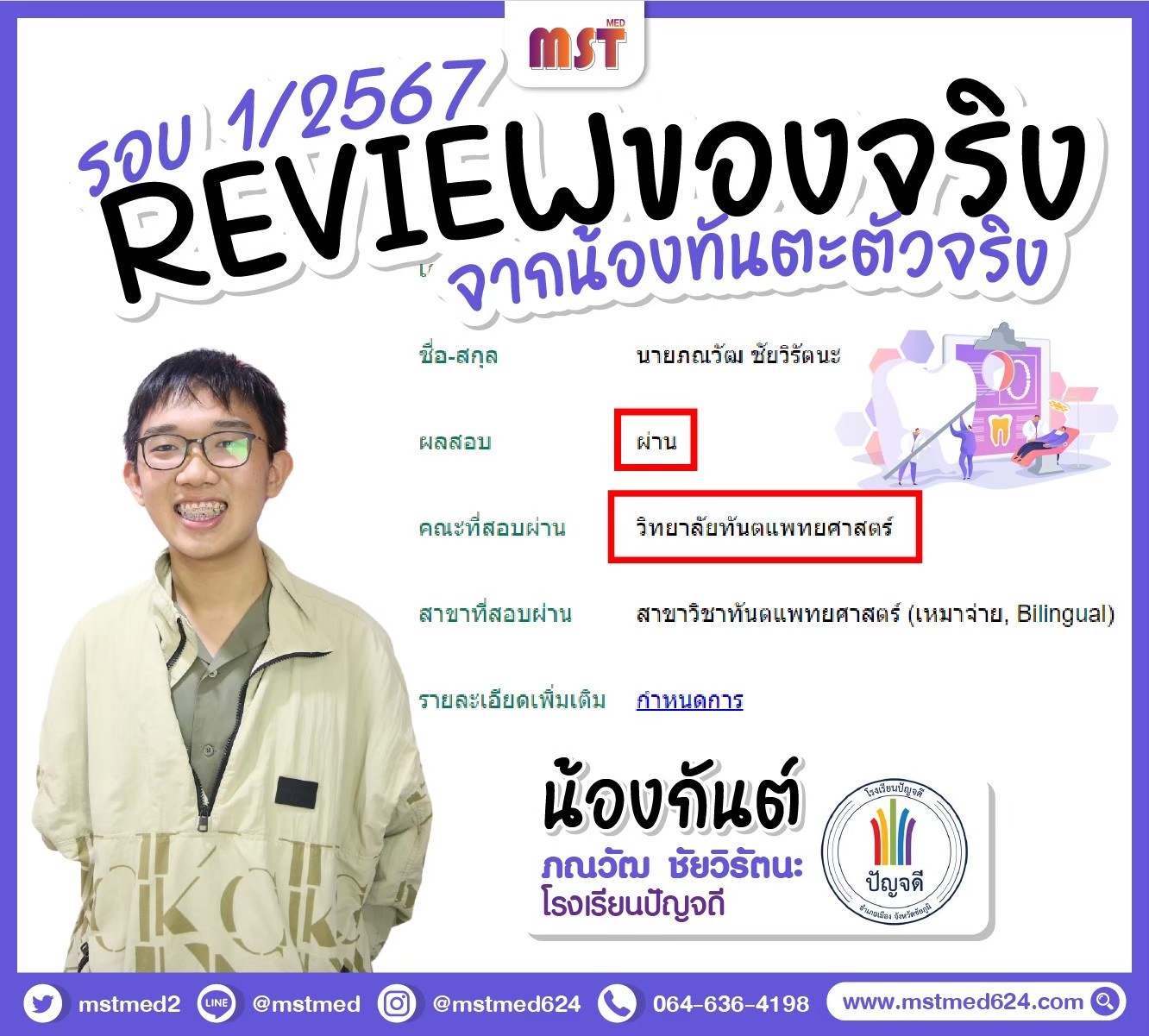 💜 น้องกันต์คืออีกหนึ่งบทพิสูจน์ความสำเร็จที่เลือก MST MED เป็นตัวช่วยในการสานฝัน!
