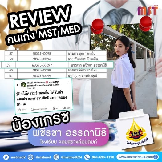 อยากมีชื่อบนตารางผู้สอบติดแบบน้องเกรซ อย่ารอช้า! ให้ 𝐌𝐒𝐓 𝐌𝐄𝐃 เป็นสะพานส่งน้องๆ สู่คณะในฝันกันเถอะค่ะ