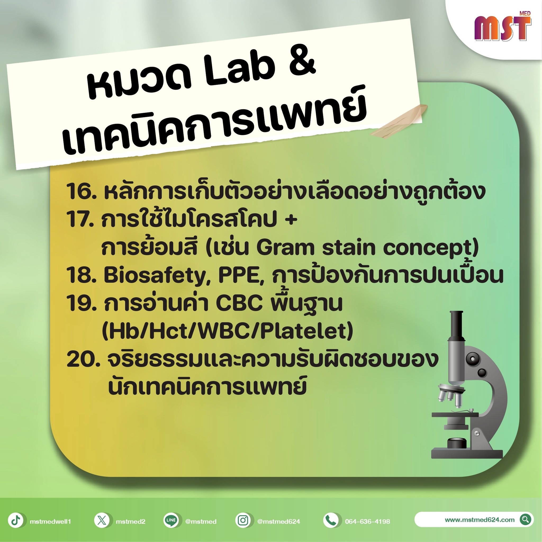 หมวด 𝗟𝗮𝗯 & เทคนิคการแพทย์ การเก็บตัวอย่าง, การใช้กล้อง, 𝗕𝗶𝗼𝘀𝗮𝗳𝗲𝘁𝘆 และจริยธรรมวิชาชีพ