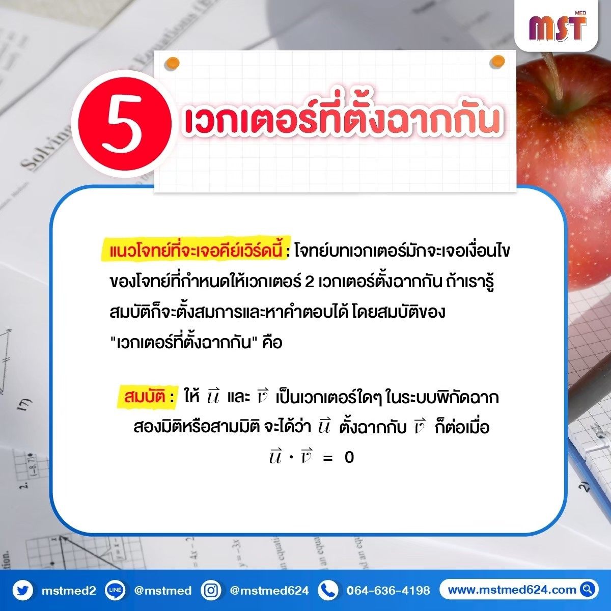 5️⃣ "เวกเตอร์ที่ตั้งฉากกัน" 📐คีย์เวิร์ดนี้มาเมื่อไหร่ ให้ท่องไว้เลยว่า Dot Product ต้องเป็นศูนย์!