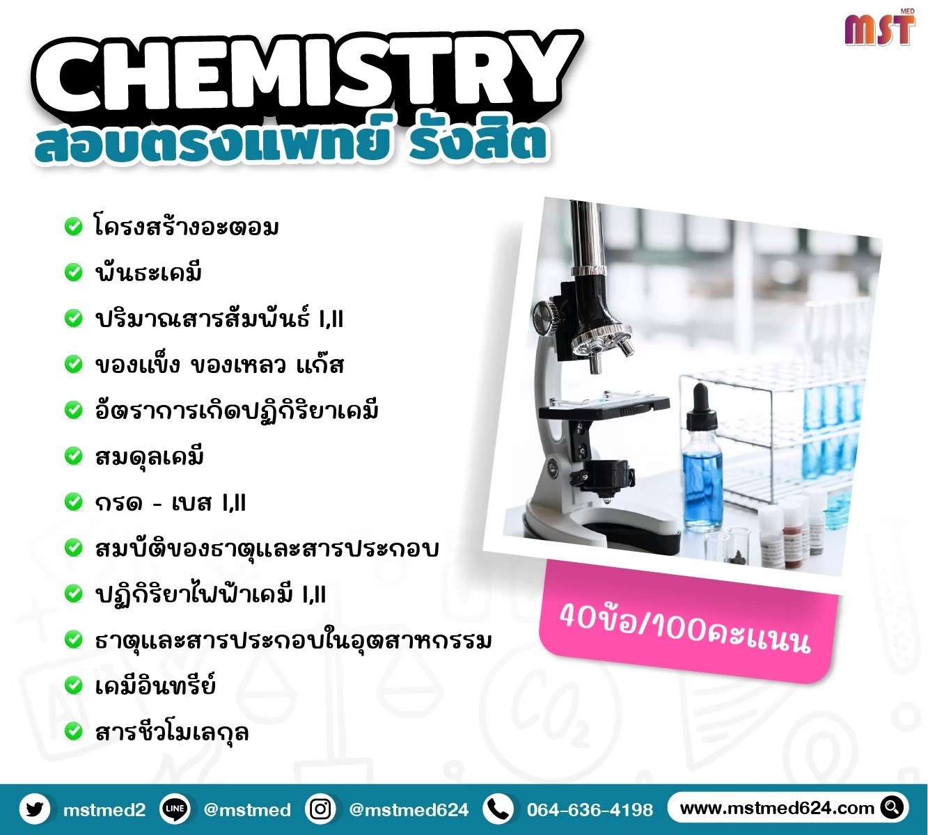CHEMISTRY โครงสร้างอะตอม, พันธะเคมี, สมดุลเคมี, กรด-เบส, เคมีอินทรีย์ (40 ข้อ/100 คะแนน)