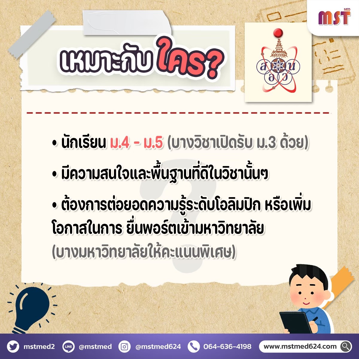 #สอวน #โอลิมปิกวิชาการ #ติวสอวน #MSTMED #POSN #ติวแพทย์ #ติวเข้าแพทย์ #ติวแพทย์รังสิต #ติวทันตะรังสิต #ติวเภสัชรังสิต