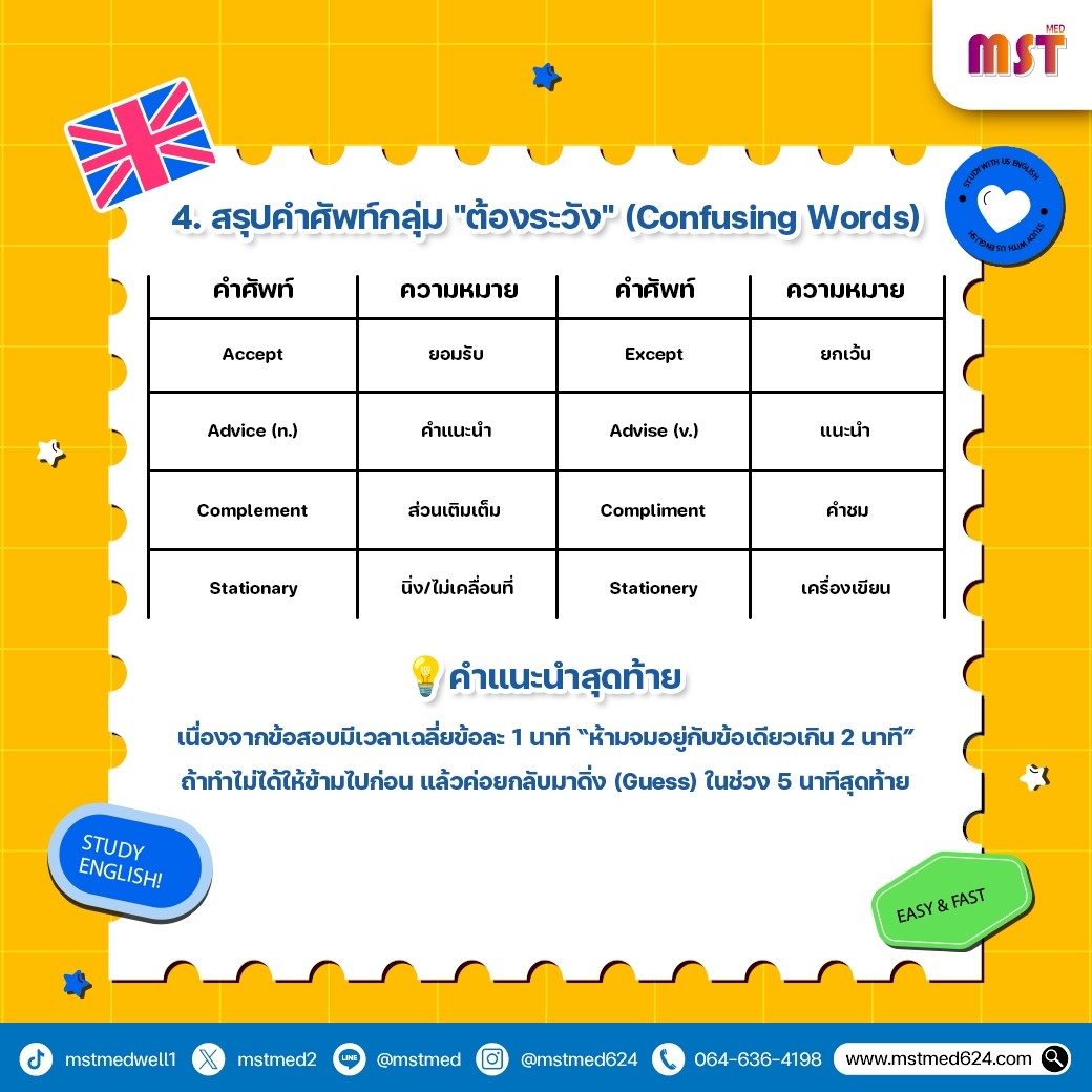 สรุปคำศัพท์กลุ่ม "ต้องระวัง" (Confusing Words)