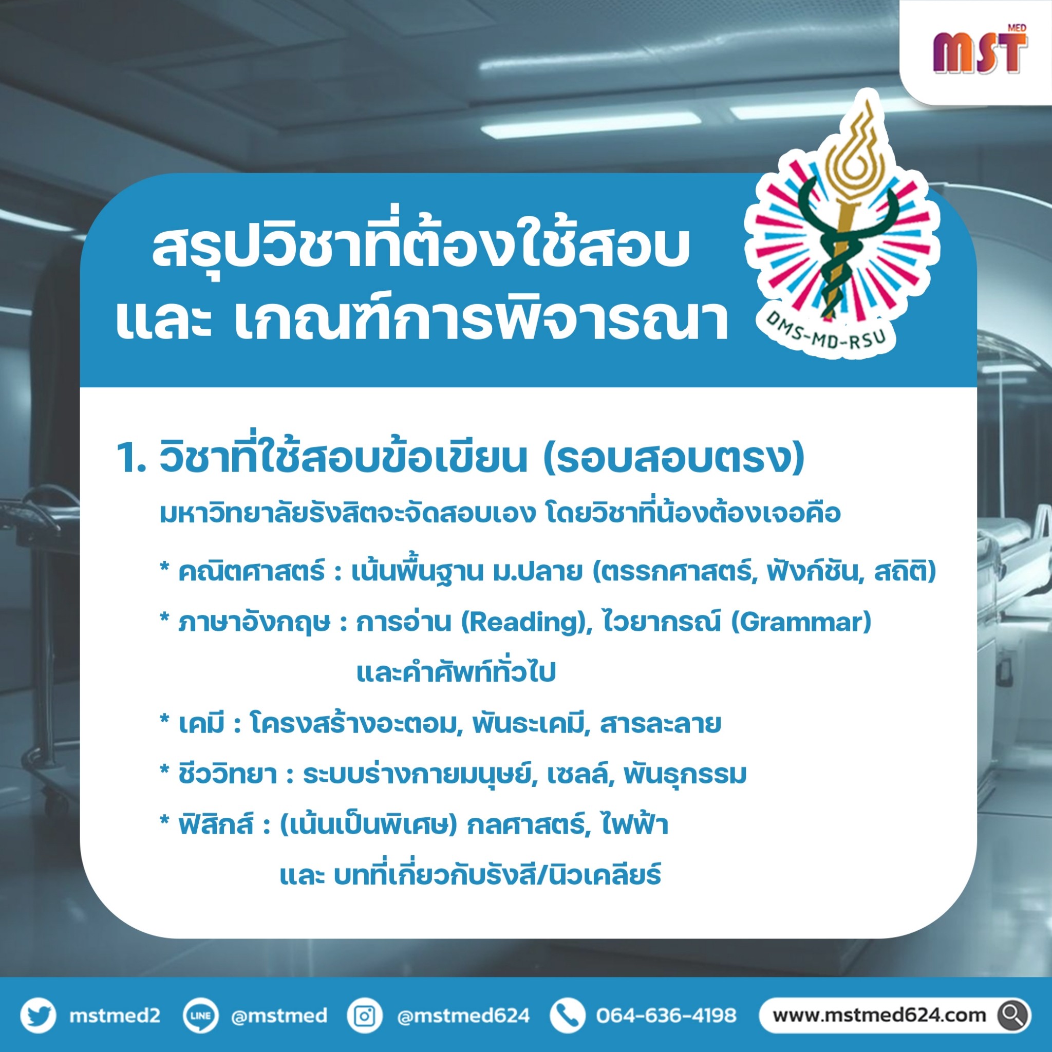Facebook : Mst Med ติวเข้าแพทย์ ทันตะ เภสัช ม.รังสิต