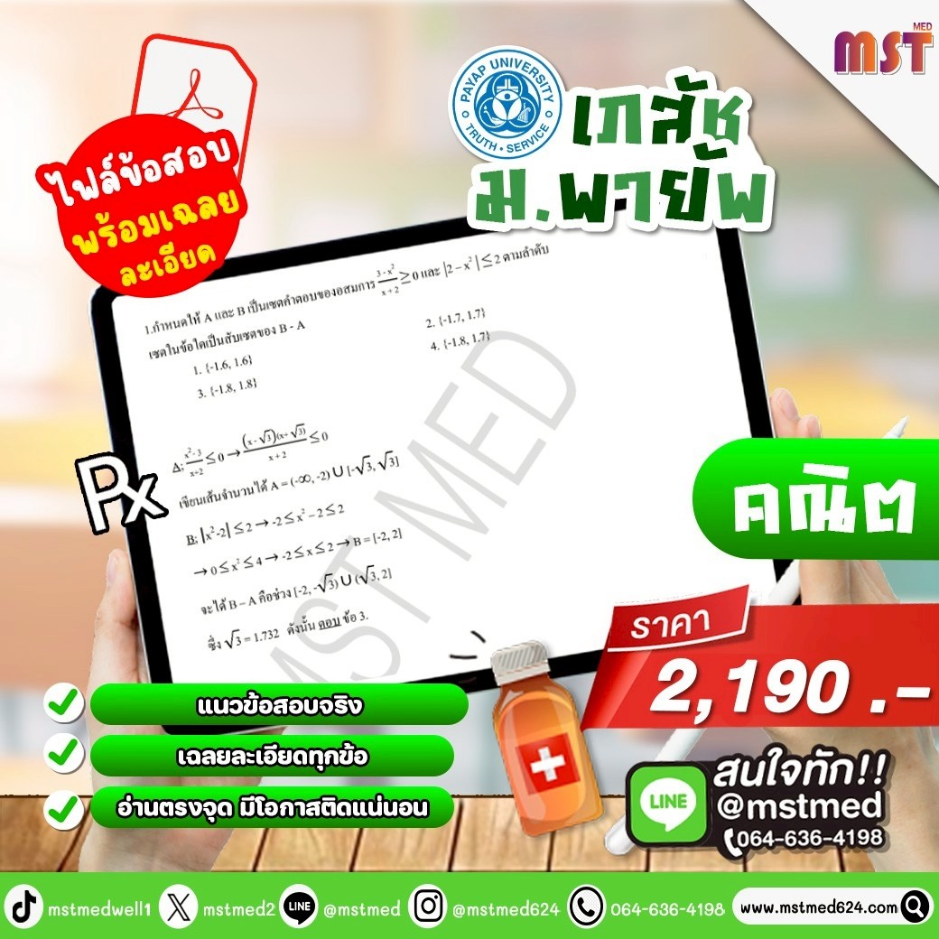 สถาบัน 𝐌𝐒𝐓 𝐌𝐄𝐃 จัดให้เน้นๆ กับ "ไฟล์ข้อสอบจำลองเภสัชฯ ม.พายัพ" ที่รวบรวมแนวข้อสอบจริง พร้อมเฉลยละเอียดแบบเข้าใจง่ายที่สุด!