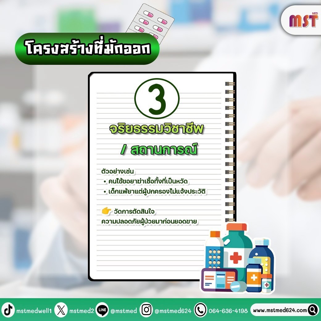 𝟑. จริยธรรม & สถานการณ์ วัดการตัดสินใจในเคสต่างๆ เช่น การแพ้ยา หรือการจ่ายยาให้ผู้ป่วย