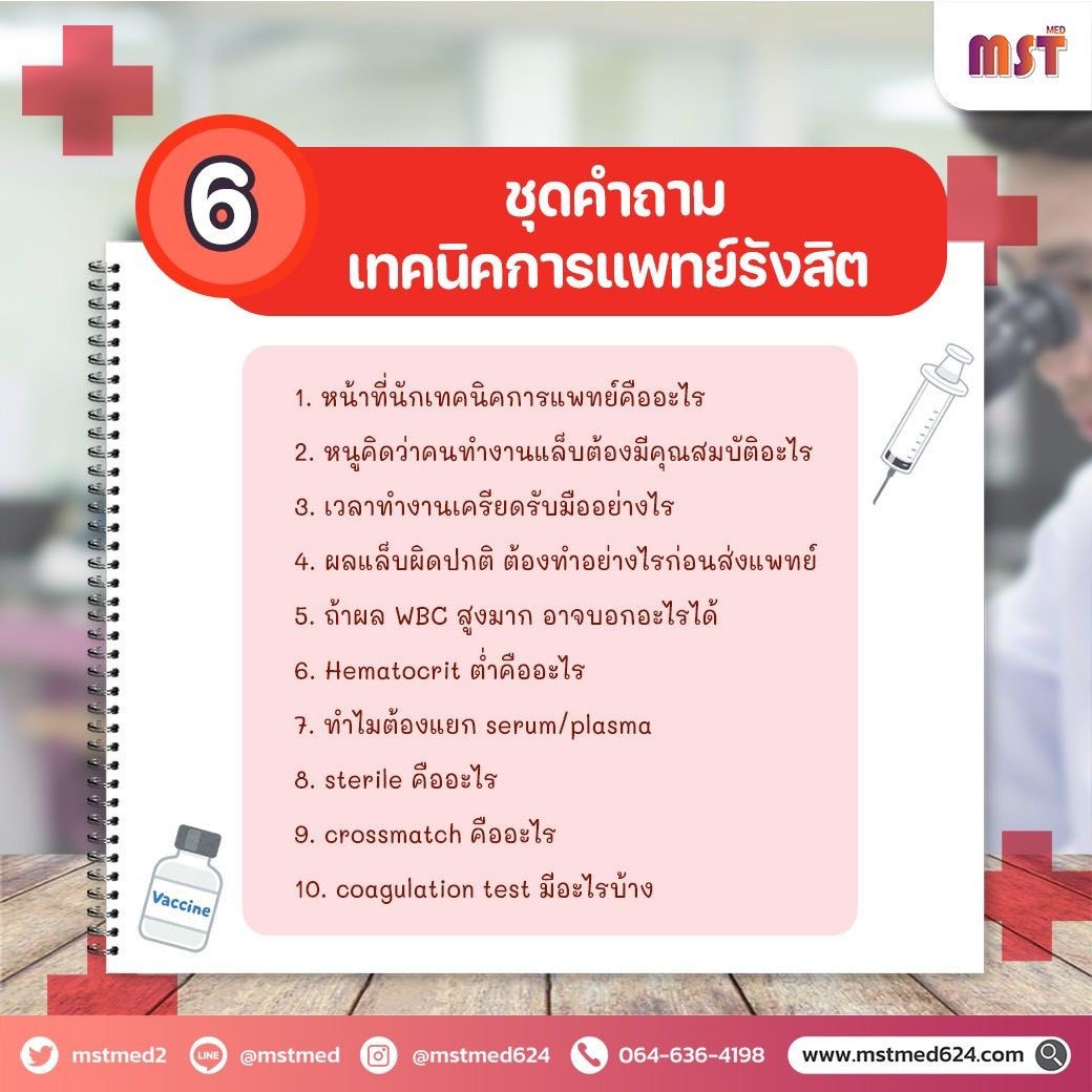 6️. ชุดคำถามเทคนิคการแพทย์รังสิต (ตัวอย่างเชิงปฏิบัติ)