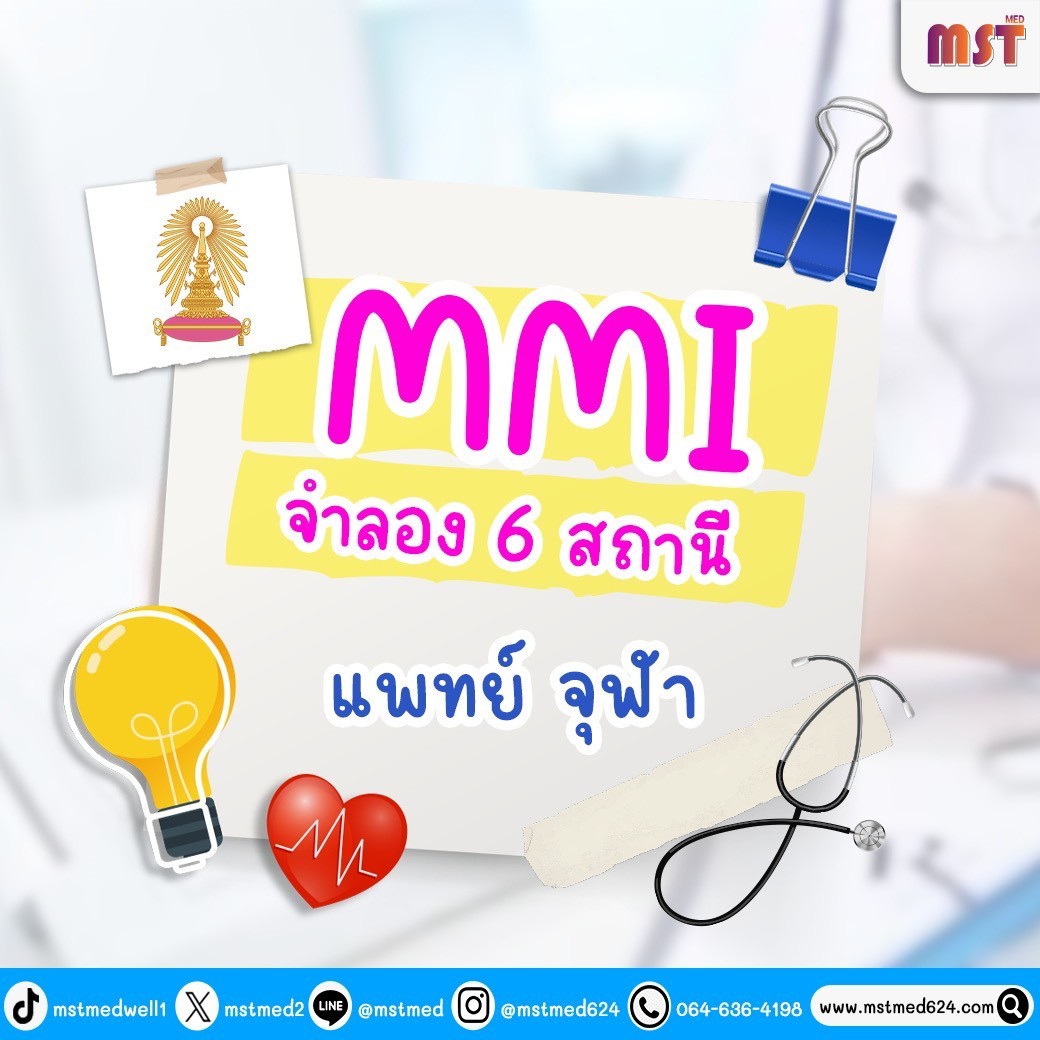 สถาบัน 𝗠𝗦𝗧 𝗠𝗲𝗱 ขอเชิญชวนน้องๆ ที่ใฝ่ฝันอยากเป็น "แพทย์ จุฬาฯ" มาเตรียมความพร้อมสำหรับรอบ 𝐌𝐌𝐈 (𝐌𝐮𝐥𝐭𝐢𝐩𝐥𝐞 𝐌𝐢𝐧𝐢 𝐈𝐧𝐭𝐞𝐫𝐯𝐢𝐞𝐰) ด้วย 𝗠𝗠𝗜 จำลอง 6 สถานี ที่เข้มข้นและสมจริงที่สุด!
