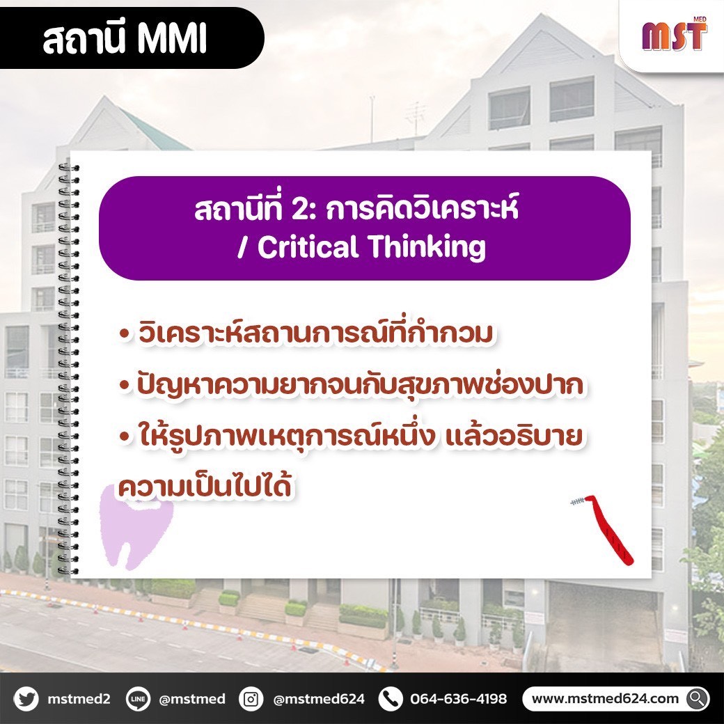 ✔️ ฝึก MMI ทุกสถานี: จริยธรรม / Critical Thinking / Communication