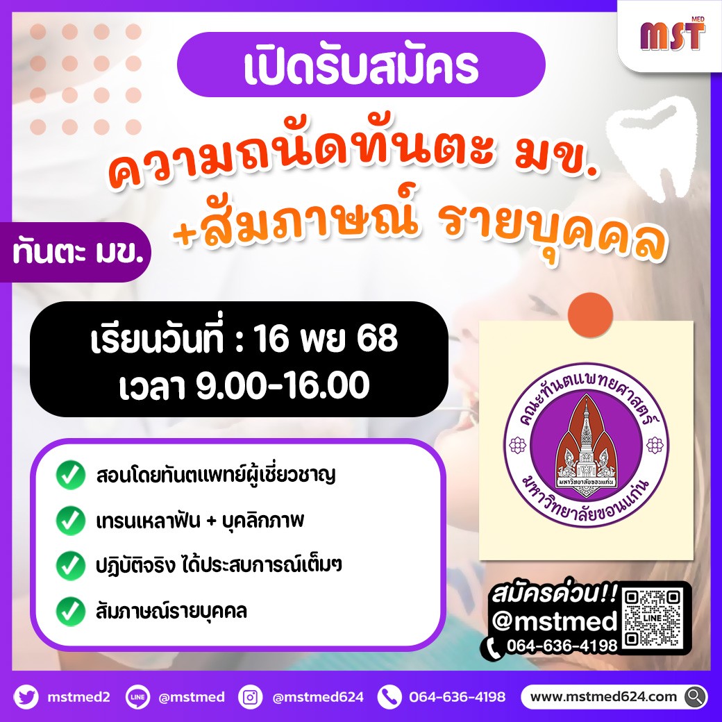 เปิดรับสมัคร “คอร์สความถนัดทันตะ มข. + สัมภาษณ์รายบุคคล + MMI เต็มระบบ” 16 พ.ย. 68 พร้อมติวเข้มโดย ทันตแพทย์จริง + ทีมผู้เชี่ยวชาญสายสุขภาพช่องปาก