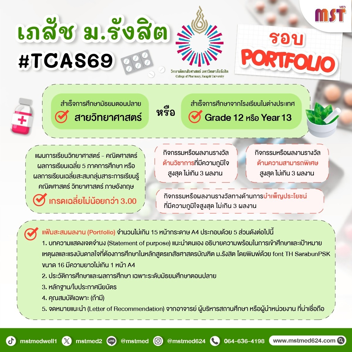 #เภสัชรังสิต #Portfolio #เกณฑ์พอร์ตเภสัช #TCAS69 #ติวพอร์ต