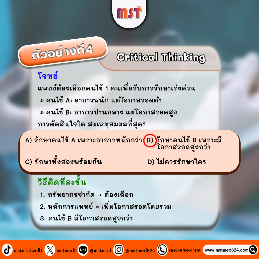 𝐂𝐫𝐢𝐭𝐢𝐜𝐚𝐥 𝐓𝐡𝐢𝐧𝐤𝐢𝐧𝐠 (คิดเชิงวิพากษ์) สำคัญมาก! ต้องตัดสินใจบนหลักการแพทย์และจริยธรรมที่สมเหตุสมผลที่สุด