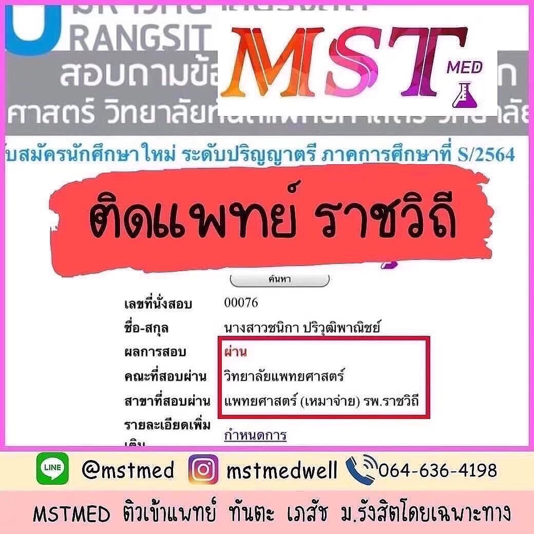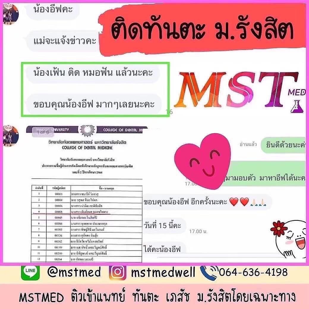 💖 Facebook : Mst Med ติวเข้าแพทย์ ทันตะ เภสัช ม.รังสิต