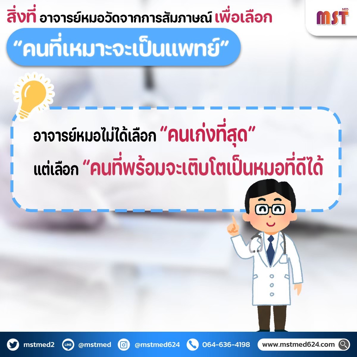 อาจารย์หมอไม่ได้เลือก "คนเก่งที่สุด" แต่เลือก "คนที่พร้อมจะเติบโตเป็นหมอที่ดีได้" ค่ะ