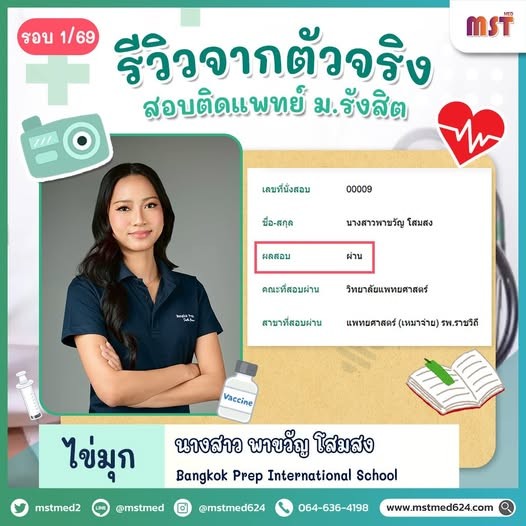 ทำไมต้อง 𝐌𝐒𝐓𝐌𝐄𝐃 ในเส้นทางสู่แพทย์ ม.รังสิต? ความสำเร็จของน้องไข่มุกและเพื่อนๆ คือเครื่องพิสูจน์ว่า การเตรียมตัวที่แม่นยำ และการโค้ชชิ่งแบบเจาะลึกของเรานั้น ได้ผลจริง!
