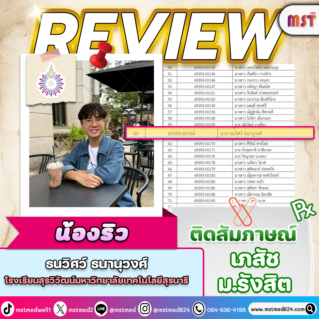 ขอแสดงความยินดีอย่างเป็นทางการกับ "น้องริว" คนเก่งของเรา 𝐌𝐒𝐓 𝐌𝐄𝐃 ที่โชว์ฟอร์มสุดปัง ติดสัมภาษณ์ คณะเภสัชศาสตร์ มหาวิทยาลัยรังสิต ได้สำเร็จ!