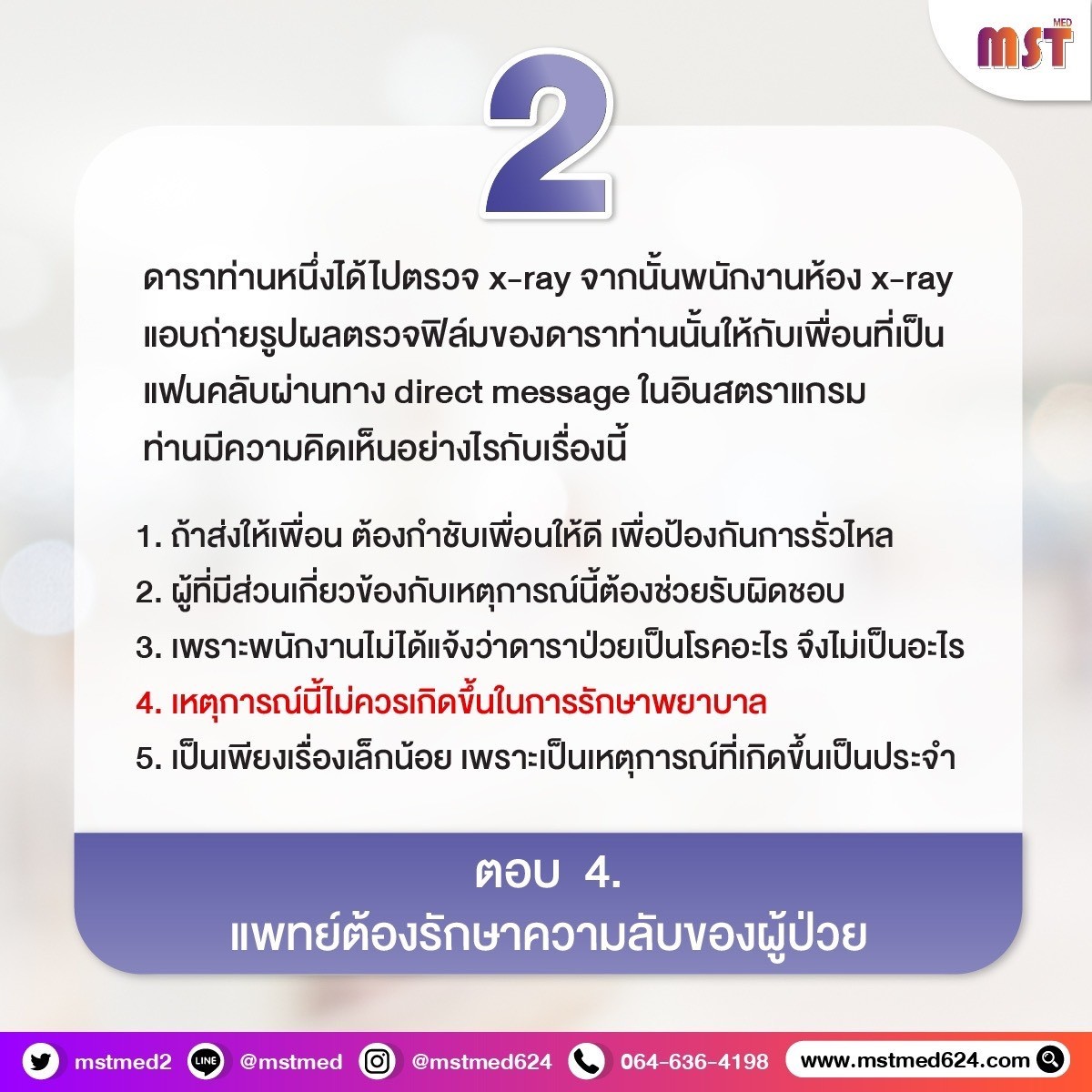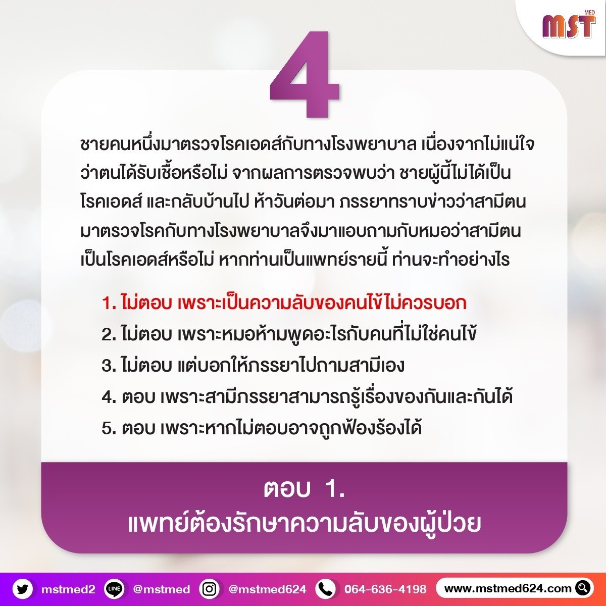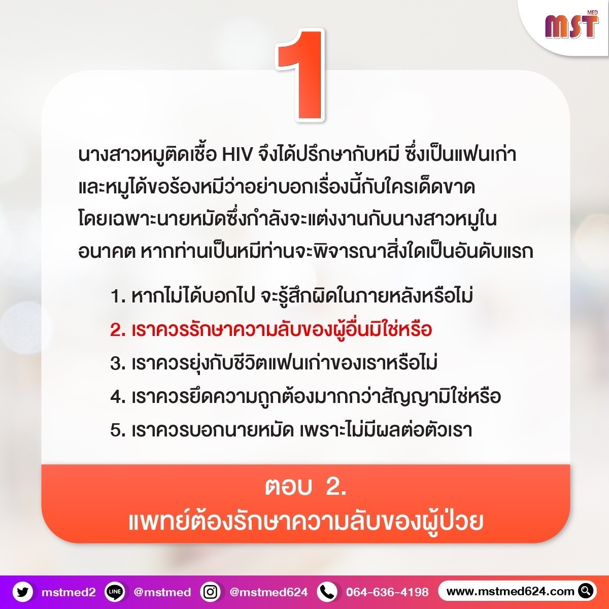 คำถามวัดจริยธรรม & ความลับผู้ป่วย