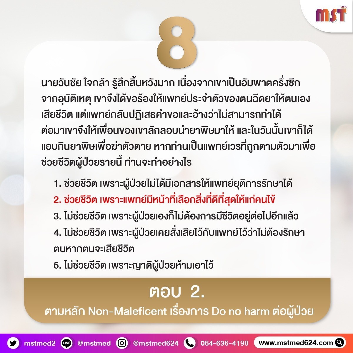 𝟴 สถานการณ์น่าออกสอบ คำถามจับฉลากแพทย์