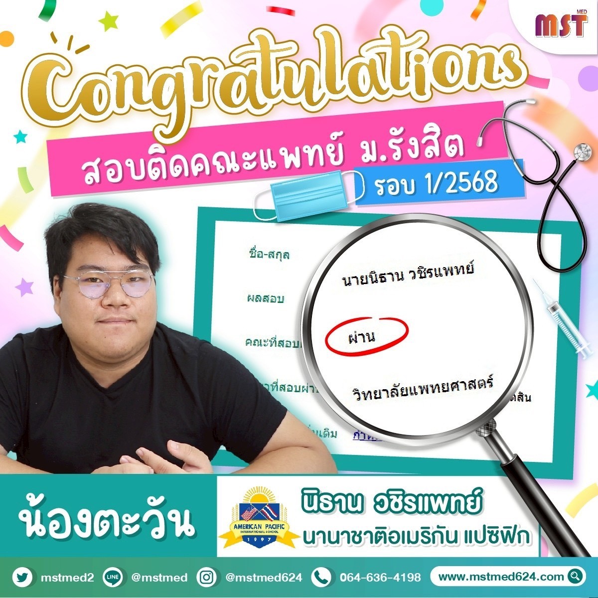 💖 Facebook : Mst Med ติวเข้าแพทย์ ทันตะ เภสัช ม.รังสิต