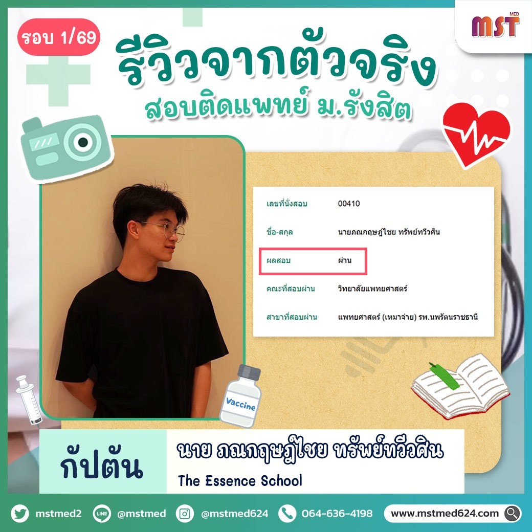 ส่องความสำเร็จ! "น้องกัปตัน" สอบติด "แพทย์ ม.รังสิต" ได้ในรอบ 1/69
