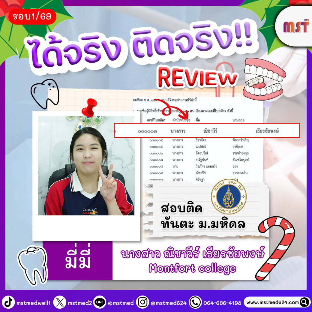 ปังสุดหยุดไม่อยู่! "น้องมีมี่" เด็กมงฟอร์ตพิชิตฝัน สอบติดทันตะ ม.มหิดล รอบ 1/69 แล้วค่าาา!