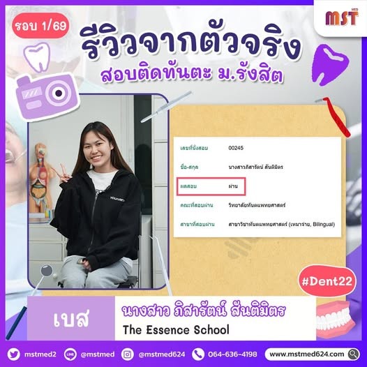 ขอแสดงความยินดีกับ "น้องเบส" ภิสารัตน์ สันติมิตร จาก The Essence School ที่สอบเข้ารอบสัมภาษณ์ สาขาวิชาทันตแพทยศาสตร์ วิทยาลัยทันตแพทยศาสตร์ ม.รังสิต!