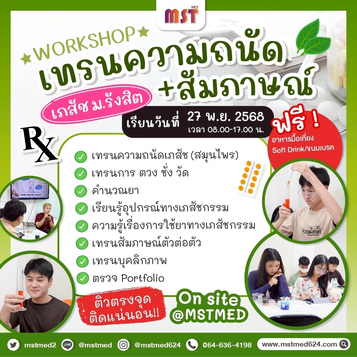 WORKSHOP เทรน ความถนัดเภสัชรังสิต + สัมภาษณ์เภสัชรังสิต วันที่ 27 พ.ย. 2568