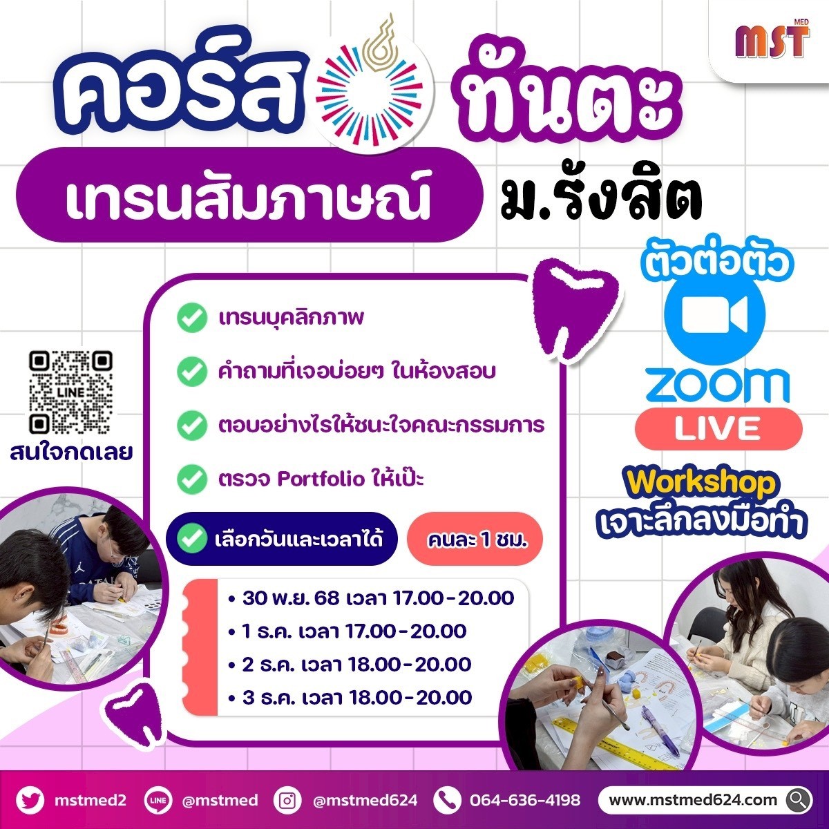WORKSHOP ความถนัดทันตะรังสิต + สัมภาษณ์ทันตะรังสิต สำหรับนานาชาติ