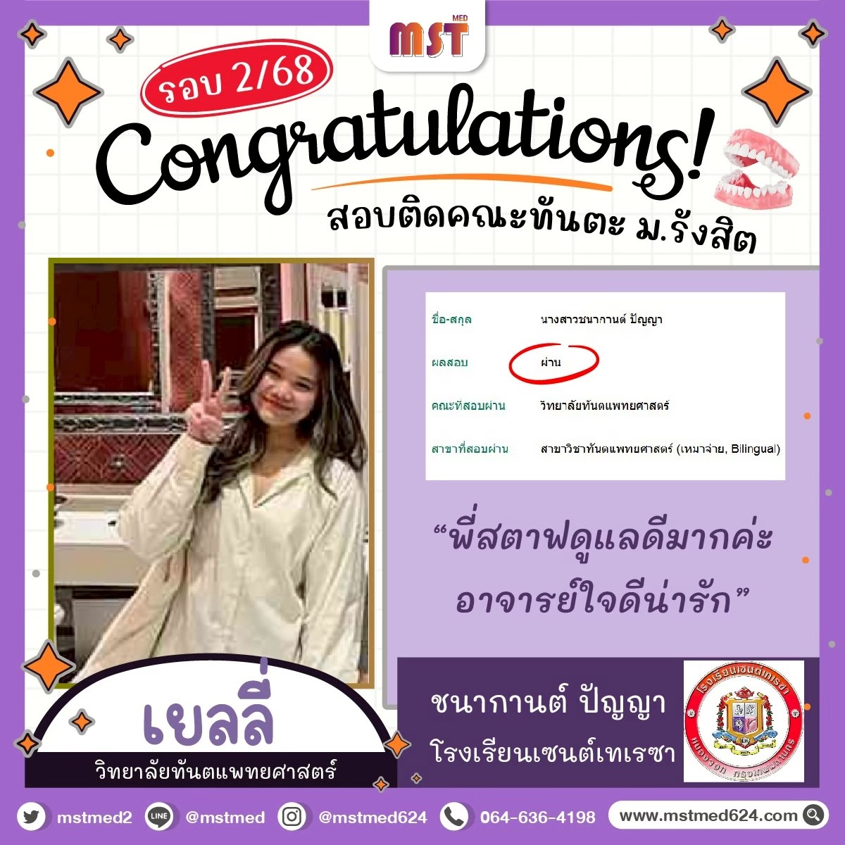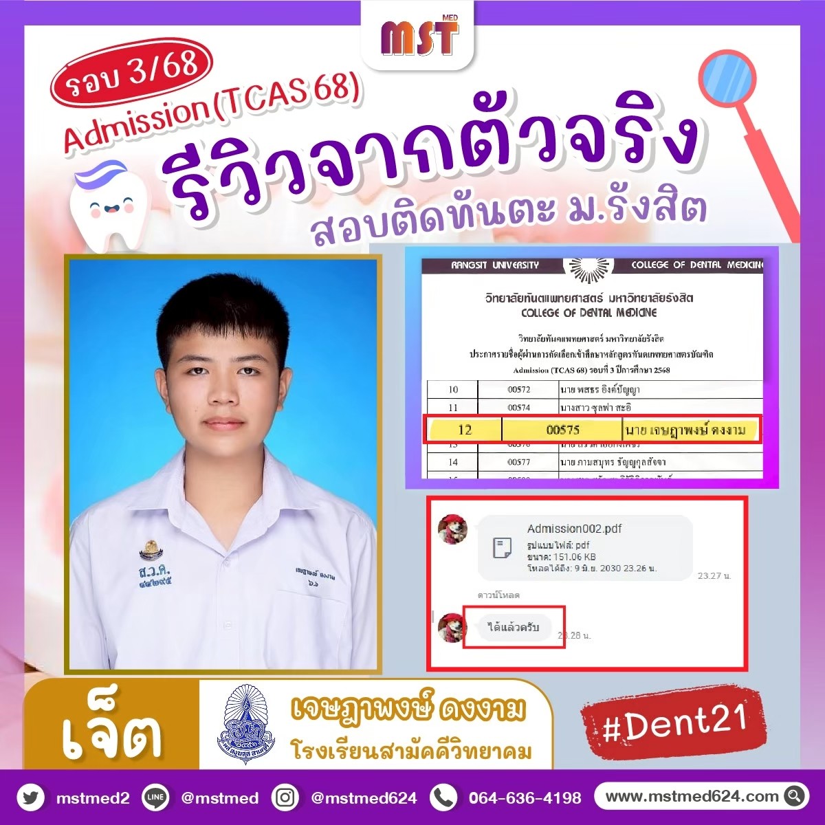ขอปรบมือรัวๆ ให้กับ น้องเจ็ท เจษฎาพงษ์ ดงงาม ที่คว้าเก้าอี้ ทันตะ ม.รังสิต มาครองได้สำเร็จ!