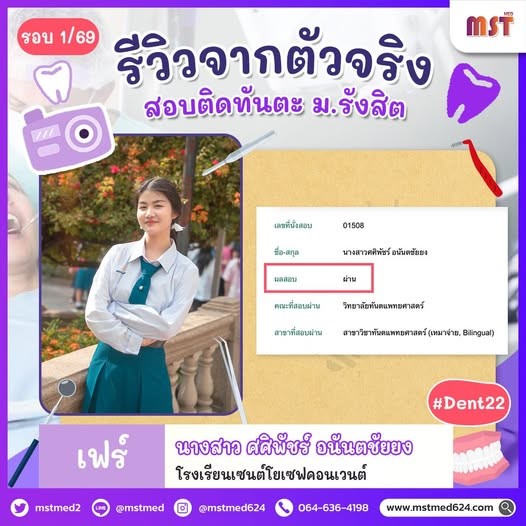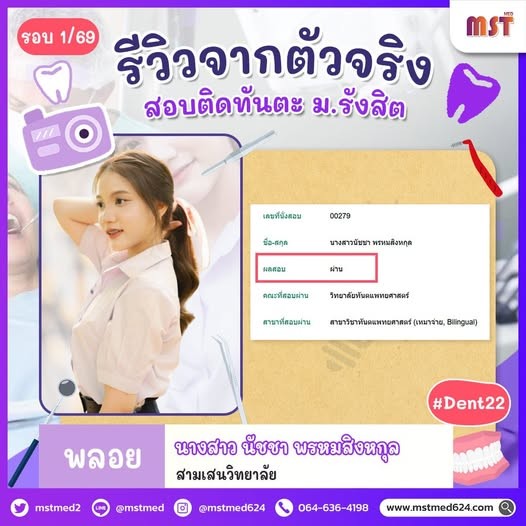 น้อง ข้าวฟ่าง สอบติดทันตแพทย์ ม.รังสิต รอบ 1/69